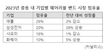 中의 중동 점유율, 애플·삼성 다음