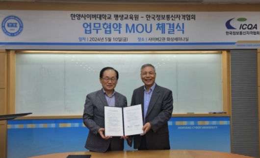 [디지털데일리 양민하 기자] 한국정보통신자격협회(ICQA)와 한양사이버대학교는 지난 10일 한양사이버대학교 사이버2관에서 정보통신기술(ICT) 융합 분야의 미래 인재 양성을 목표로 업무협약(MOU)을 체결했다고 14일 밝혔다.