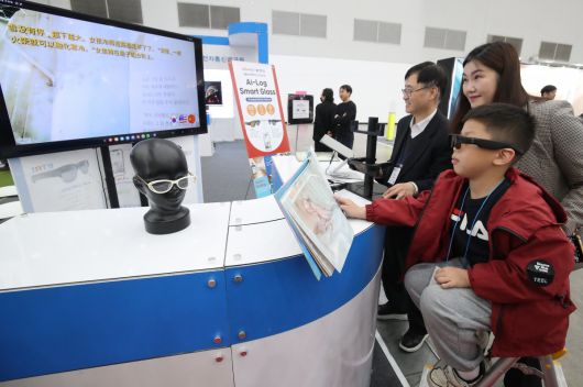 3일 대구 북구 엑스코에서 개막한 ‘제22회 대구국제안경전(DIOPS)’을 찾은 중국인 어린이가 인공지능(AI)이 탑재돼 각국 언어로 자동번역 해주는 스마트글래스를 착용하고 한글 동화책을 읽고 있다. (사진은 기사 내용과 무관) 2024.4.3 ⓒ News1 |