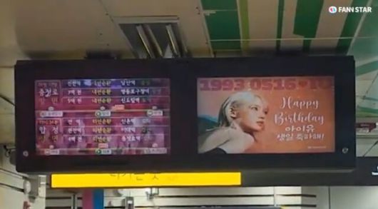 "아이유 생일 축하해" 16일 가수 아이유의 생일을 맞아 서울 지하철 42개역 대합실 전광판에서 축하 영상이 상영 중이다. /팬앤스타 |