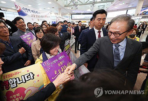 이 전 대통령은 "모처럼 왔는데 여러분이 이렇게 환영해주셔서 정말 고맙고 여기 나와주신 마음은 따뜻하게 받아들이겠다"고 말했다.