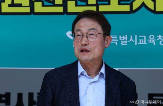조희연 서울시교육감이 28일 서울 종로구 서울시 교육청에 마련된 학생인권조례 폐지 반대를 촉구하는 농성장에 앉아 있다/사진=뉴시스 /사진=김근수 |