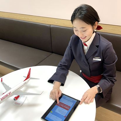 이스타항공 객실 승무원이 안전 정보 안내 챗봇 ‘세이프티 스타'를 사용하는 모습. 이스타항공 제공 |