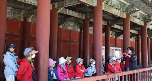 문화재청 창경궁관리소 주최로 16일 서울 종로구 창경궁에서 열린 지역사회 어르신 초청 문화유산 프로그램 ‘쉼’ 참가자들이 문화유산해설사로부터 창경궁에 대해 설명을 듣고 있다. 이제원 선임기자 ⓒ 세상을 보는 눈, 세계일보