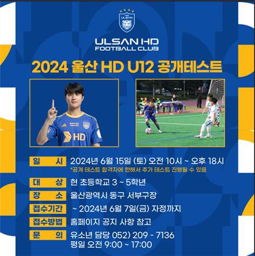 울산 HD U-12 유소년 선수 선발 공개 테스트 |