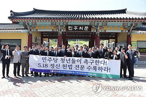 (광주=연합뉴스) 장아름 기자 = 더불어민주당 광주시당은 17일 성명을 내고 "5·18 정신의 헌법 계승을 위해 국민과 함께 노력하겠다"고 밝혔다.