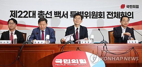 (서울=연합뉴스) 안채원 김치연 기자 = 국민의힘에서 4·10 총선 참패 원인을 분석하기 위한 백서 발간을 둘러싸고 내부 논쟁이 격화하고 있다.
