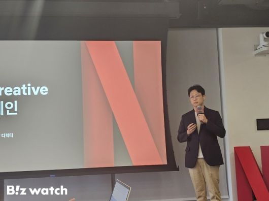 하정수 넷플릭스 한국 프로덕션 총괄 디렉터가 17일 오전 서울 종로구에 위치한 넷플릭스 서울오피스에서 그로우 크리에이티브 교육 캠페인에 대해 발표하고 있다. /사진=비즈워치 |