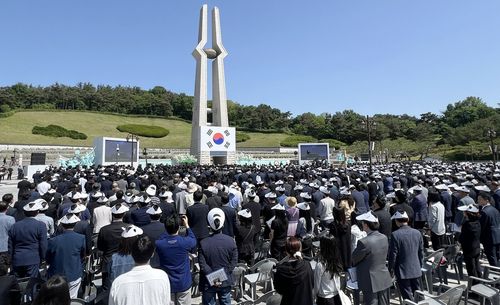 올해 기념식은 5·18 유공자와 유족 등 2천500명이 초청돼 이날 오전 10시부터 45분간 광주 국립 5·18 민주묘지에서 열렸다.