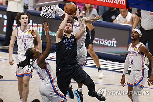 오클라호마시티와 6차전에서 공격을 시도하는 댈러스의 돈치치 |