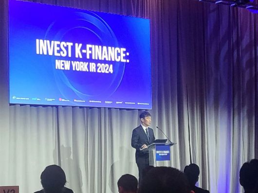 금융감독원과 한국거래소는 서울시·부산시·금융권과 공동으로 지난 16일(현지시간) 미국 뉴욕 콘래드 다운타운호텔에서 해외 투자자 유치를 위한 기업설명회(IR)인 ‘인베스트 K-파이낸스 뉴욕 IR 2024’를 열었다. 이날 행사에 참석한 이복현 금융감독원장이 개회사를 하고 있다. 사진=서혜진기자 |