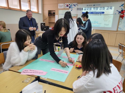 올해로 3년째 시행되고 있는 패션 산업디자인과 산학맞춤반 학생들을 대상으로 한 글로벌 역량 강화프로그램은 근명고의 대표 수업이다. 올해는 한국외대 호른 교수, 원어민 대학생과 함께 외국의 도제교육 시스템, 글로벌 인터뷰 매너, 이력서 작성 등을 영어 수업으로 진행했다. 참가 학생들은 외국인과의 의사소통에 대한 자신감과 함께 글로벌 직업인으로서 역량을 기를 기회였다.