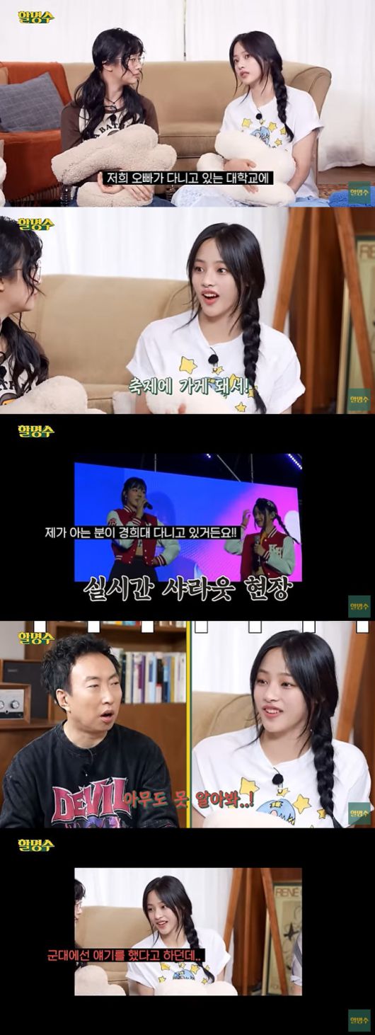 이날 박명수는 민지에게 "민지는 경희대 축제 때 오빠가 경희대에 다녀서 언급한 적 있었다며?"라고 물었다.