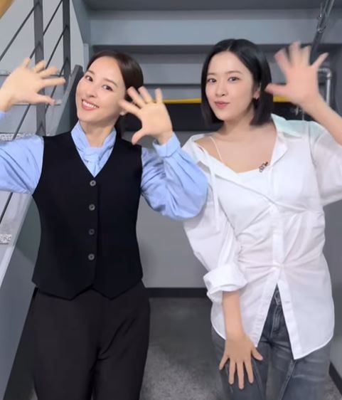 배우 한혜진이 그룹 아이브 멤버 안유진과 챌린지 영상을 찍었다.