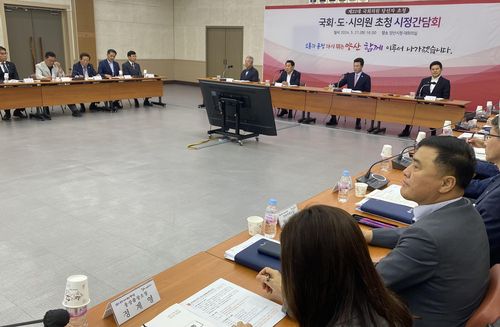 (양산=연합뉴스) 최병길 기자 = 경남 앙산시가 지역 국회의원 당선인, 시도의원들과 함께 현안 사업 '골든타임' 사수를 다짐하며 머리를 맞댔다.