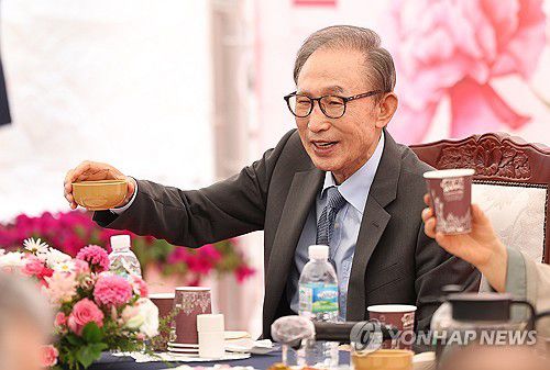 건배하는 이명박 전 대통령 |