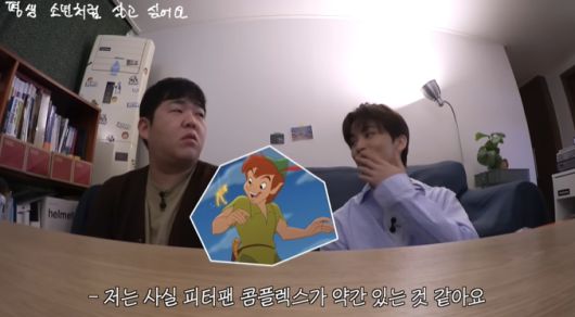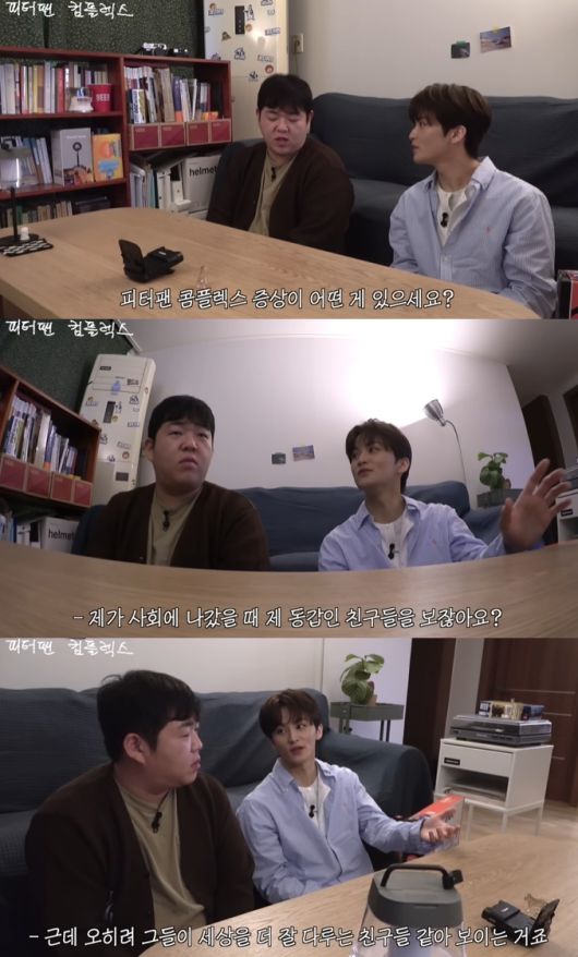 "피터팬 콤플렉스에 어떤 증세가 있냐"는 질문에 마크는 "제가 사회에 나갔을 때 동갑인 친구들을 보면 저보다 형 같을 것 같다"고 입을 열었다.