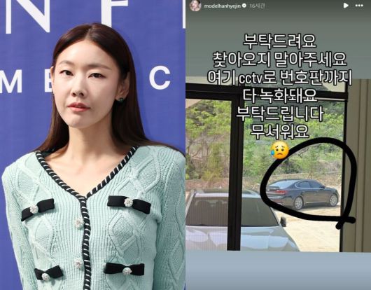 한혜진은 자신의 인스타그램에 낯선 차량이 앞마당에 주차된 사진을 올리며 “부탁드린다. 찾아오지 말아달라”고 적었다. 그러면서 “여기 CCTV로 (차량) 번호판까지 다 녹화된다”며 “부탁드린다. 무섭다”고 덧붙였다.