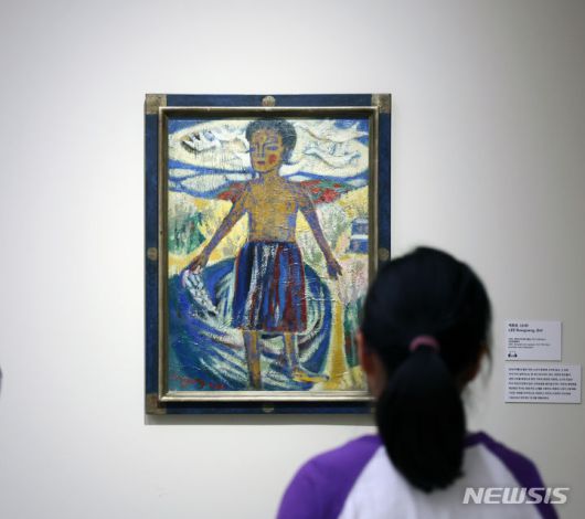[과천=뉴시스] 박진희 기자 = 국립현대미술관 과천에서 21일부터 시작한 'MMCA 기증작품전: 1960-1970년대 구상회화' 전시장을 찾은 초등학생이 이봉상의 작품 '소녀'을 관람하고 있다. 'MMCA 기증작품전: 1960-1970년대 구상회화' 전시는 최근 5년간 국립현대미술관에 기증된 작품 가운데 한국 화단의 형성과 성장에 자양분이 된 1960-70년대 구상회화 주요작품으로 구성되어 있다. 2024.05.22. pak7130@newsis.com