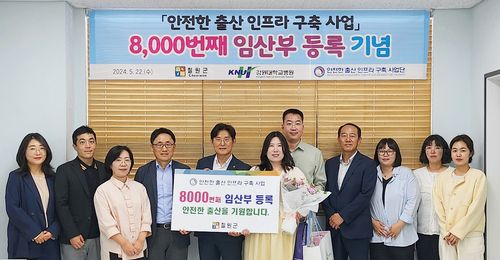 황종윤 사업단장, 이춘재 철원군보건소장 등 10여명은 8천번째 등록 임산부 전모(30)씨를 축하하며 꽃다발과 선물을 전달했다.