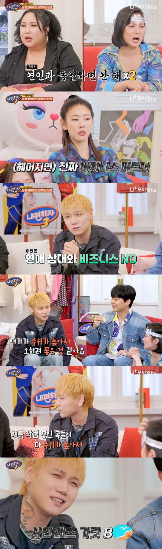 23일 공개된 LG U+모바일tv 오리지널 예능 ‘믿고 말해보는 편-내편하자’ 시즌3(이하 ‘내편하자3’)에서는 한혜진, 박나래, 풍자, 엄지윤과 저스디스, 래원이 연인과의 동업에 대해 경험에서 우러나온 고민 상담을 펼쳤다.