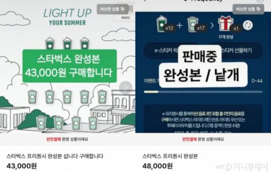 "스타벅스 프리퀀시 완성본 4만6000원에 선착순 판매합니다."