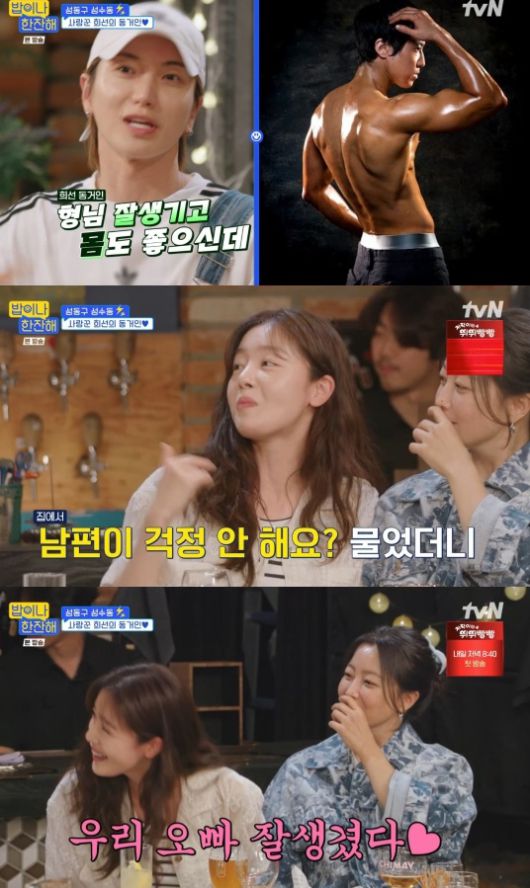 이특은 "형님 잘생기고 몸도 좋으신데 이것도"라며 술을 잘 마신다고 밝혔다. 그러자 한선화 또한 김희선과 국제영화제를 갔을 당시를 떠올리며 "'이렇게 매번 회식 때문에 늦으면 집에 오빠가 걱정 안 해요?' 이랬더니 '우리 오빠 잘생겼다' 하더라. '진짜 사랑하시는구나' 했다"라며 일화를 공개했다.