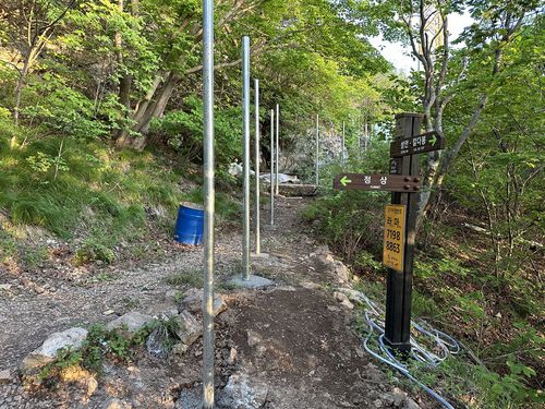 금오산 정상 부근 등산로에 설치된 철 기둥 |