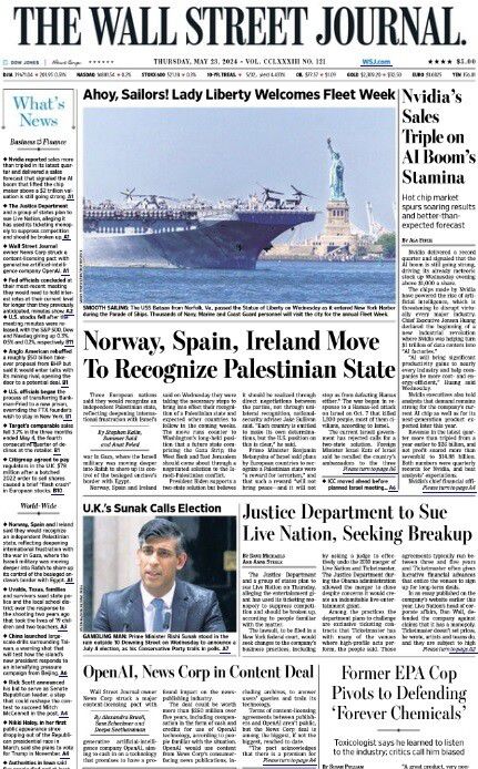 월스트리트저널(WSJ)은 23일자 신문 1면 보도를 통해 ‘오픈에이아이와 콘텐츠 협약을 체결했다’고 보도했다. 22일(현지시각) 배포한 인터넷 기사의 제목은 “오픈에이아이가 월스트리스저널의 소유주인 뉴스코프와 2억5천만달러 가치의 콘텐츠 협약을 했다”다. 호주의 미디어 재벌 루퍼트 머독이 이끄는 뉴스코프가 오픈에이아이와 인공지능 학습을 위한 협약을 체결했다는 내용이다. 뉴스코프는 월스트리트저널(WSJ) 뿐 아리나 마켓워치, 뉴욕포스트 등 미국 언론사와 영국 더타임스, 호주 유로방송 등을 소유한 거대 미디어그룹이다.