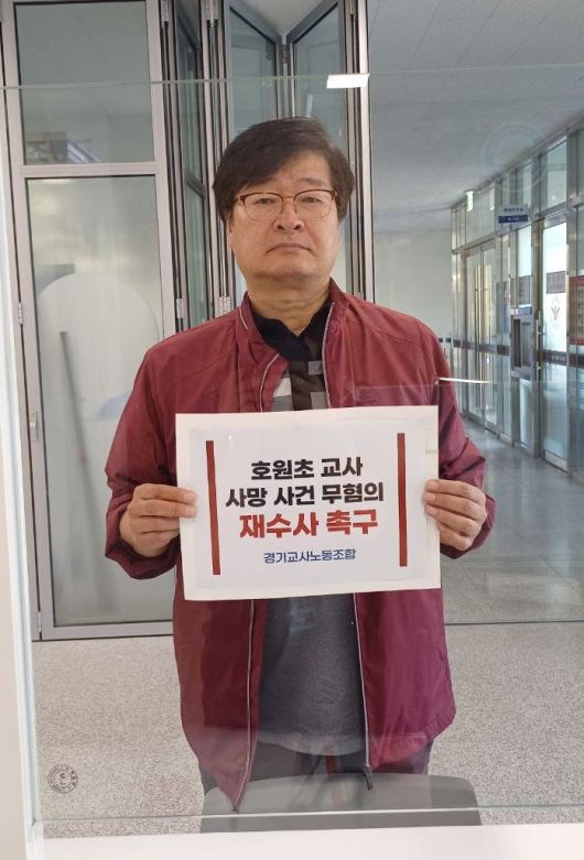 전교조 경기지부도 전날 의정부경찰서 앞에서 기자회견을 열고 해당 사건의 재수사를 요구하며 이같은 내용이 담긴 촉구 민원을 제출했다. 전교조 경기지부는 기자회견에서 "경찰은 교육 현장의 상황 맥락과 특수성을 고려하지 않은 채 단순히 명시적인 강요나 협박이 없었다는 이유로 악성 민원인의 행위를 '혐의없음'으로 결론 내버렸다"고 주장했다.