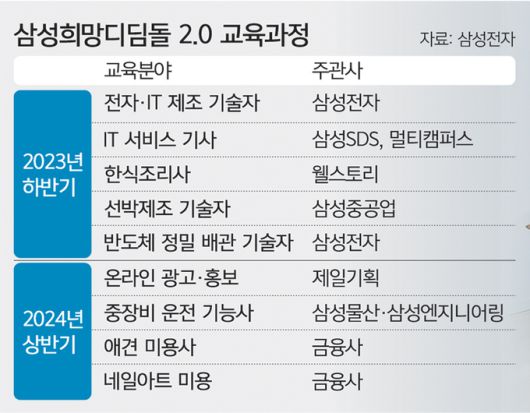 삼성은 청년들이 온전히 교육에만 집중할 수 있도록 경기 용인의 삼성전자 기흥캠퍼스 기숙사와 경남 거제 삼성중공업 기술연수원 등을 개방해 숙소와 식사를 제공한다.