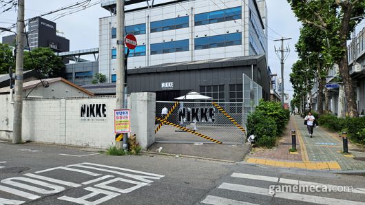 ▲ 멀리서도 '니케' 행사장인 게 느껴집니다 (사진: 게임메카 촬영) |
