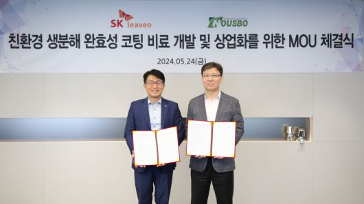 SK리비오는 24일 서울 종로구 본사에서 농업전문기업 누보와 친환경 생분해 완효성 코팅 비료 공동 상업화를 위한 업무 협약을 체결했다고 26일 밝혔다.