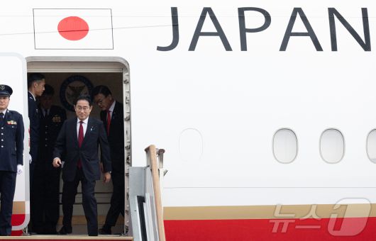 (성남=뉴스1) 이재명 기자 = 기시다 후미오(岸田文雄) 일본 총리가 26일 경기도 성남시 서울공항에 도착하고 있다. 대통령실에 따르면 윤석열 대통령은 리창 중국 국무원 총리, 기시다 후미오 일본 총리와 각각 회담을 한다. 이번 한중일 정상회의는 지난해 9월 윤 대통령이 아세안 정상회의, G20(주요 20개국) 정상회의를 계기로 기시다 총리에게 개최를 제안하면서 이뤄줬다. 2024.5.26/뉴스1