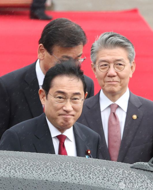[성남=뉴스핌] 이호형 기자 = ‘한중일 정상회담’ 차 입국한 일본 기시다 총리가 26일 성남 서울공항서 김홍균 외교부 제1차관의 배웅을 받으며 차량에 오르고 있다.2024.05.26 leemario@newspim.com