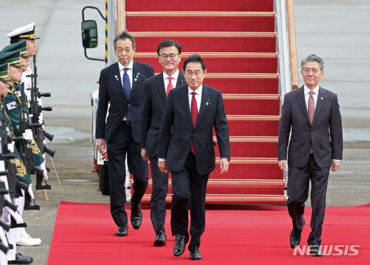 [성남=뉴시스] 김금보 기자 = 한일중 정상회의에 참석하는 기시다 후미오 일본 총리가 26일 성남 서울공항에 도착하고 있다. 2024.05.26. kgb@newsis.com |
