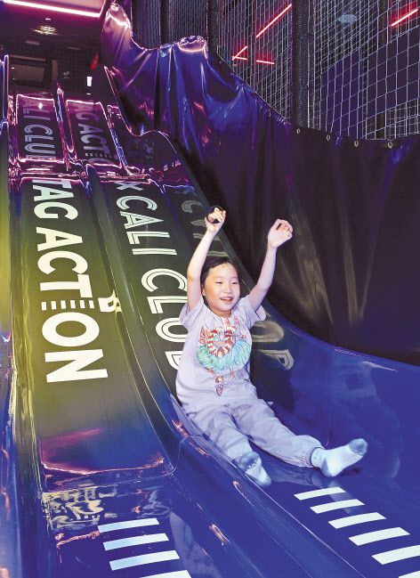 지난 23일 찾은 엔터식스 강변점. 평일 오후 한가한 시간대에도 매장 한편에서는 최신 유행곡과 함께 아이들의 웃음소리로 떠들썩했다. 키즈카페 ‘캘리클럽’에는 아이들이 삼삼오오 모여 다양한 놀이시설을 즐기고 있었다. 가장 인기 있는 기구는 ‘캘리 러닝 존’. 한 아이가 무선인식(RFID) 기술이 접목된 팔찌를 찍고 9m 길이의 코스를 왕복으로 달리자, 천장에 달린 모니터에 기록이 떴다. 1등을 기록해 5000포인트를 얻은 아이는 쌓은 포인트 5만점을 활용해 인형을 받았다. 아쉽게 인형을 얻지 못한 아이는 포인트를 얻기 위해 다른 놀이기구로 향했다.