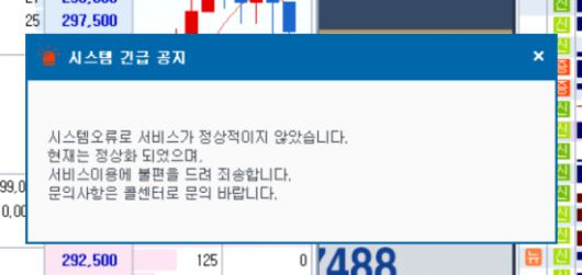 삼성증권 서비스 장애 관련 HTS 화면 캡쳐. |