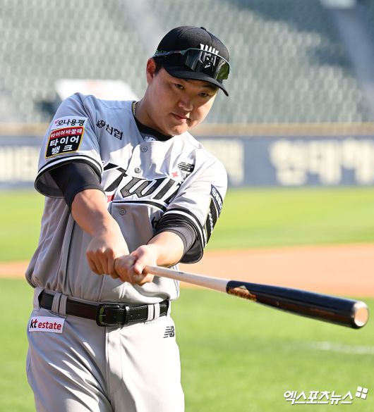29일 서울 잠실야구장. KT 위즈의 일원이 된 오재일이 첫선을 보였다. 2024 신한 SOL Bank KBO리그 두산 베어스와의 원정경기를 앞두고 KT 선수단에 합류해 훈련을 소화했다. 이후 취재진과 인터뷰에도 임하며 바쁜 시간을 보냈다.