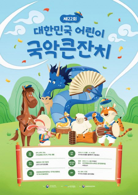 ‘제22회 대한민국 어린이 국악큰잔치’는 관악, 현악, 민요, 병창, 무용, 판소리, 풍물 등 7개 부문으로 펼쳐진다. 대한민국에 거주하는 2012~2017년 사이 출생한 어린이는 누구나 참여할 수 있다. 참가 접수는 6월 3일부터 14일까지 국가유산진흥원 누리집을 통해 가능하다.