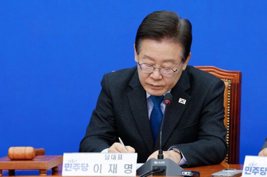 이재명 더불어민주당 대표가 29일 오전 서울 여의도 국회에서 열린 최고위원회의에 참석해 메모하고 있다. 2024.5.29/뉴스1 |