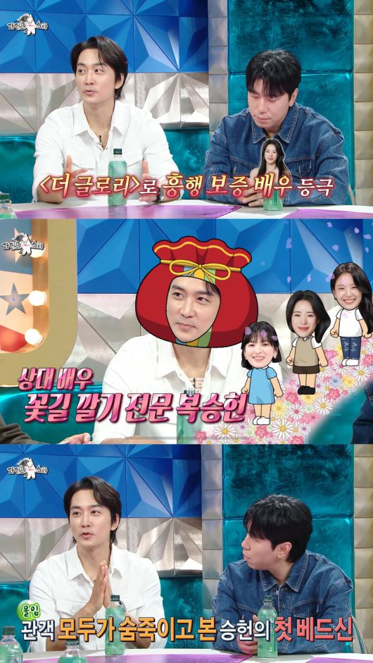 이날 오연서는 이하늬와 찍은 키스신에 대해 언급했다. 그러자 김국진은 "키스신을 하면 남다른 감정이 생기지 않나"라고 물었고 이에 송승헌은 "개인적인 감정은 있지 않고 생각만큼 달콤하거나 그러진 않다"라고 즉시 답했다.