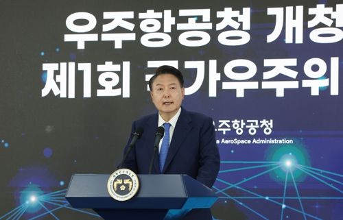 윤석열 대통령이 30일 경남 사천시 우주항공청 임시청사에서 열린 우주항공청 개청식 및 제1차 국가우주위원회에서 발언하고 있다. 연합뉴스 |