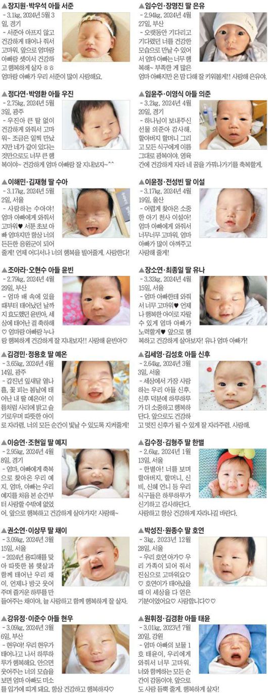 온 가족에게 기쁨을 안겨 준 아기의 탄생을 알려주세요. 홈페이지 주소 입력창에 아가야안녕.com이라고 입력하면 됩니다. 매일유업 육아 정보 사이트 매일아이(maeili.com)를 통해서도 접속할 수 있습니다. 추첨을 통해 출산 소식과 사진이 지면에 실린 가족에게는 ①케이크 구매권 ②엄마와 아기 영양을 챙겨줄 매일유업 ‘탄생 축하 선물’ ③출산 소식을 생일 날짜 본지 1면에 담은 PDF 파일 ④조선일보 1개월 무료 구독권을 드립니다. 당첨자 중 한 가족을 선정하여 해당 지면을 고급 프레임에 담아 제공하는 ‘조선일보 리프린트’도 제작해 드립니다. 홈페이지에서는 맘스 앱솔루트 첫 구매 52% 할인 혜택을 드리고 있습니다.