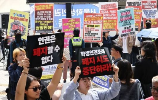 한편 전국 7개 시도에서 시행되던 학생인권조례는 교권침해의 주 원인으로 지목되면서 지난달 24일과 26일 충남과 서울에서 각각 폐지됐다. 다만 대법원이 지난 30일 충남교육청이 제기한 학생인권조례 폐지 집행정지 신청을 인용하면서 냉탕과 온탕을 오가는 중이다.