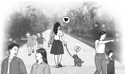 하지만 나의 변화와 관계없이, 여전히 개와 산책하다 보면 많은 말이 귓속을 파고든다. 무엇보다 이 글에 달릴 댓글들이 절로 연상된다. 한 번 맞혀볼까요? 애나 키울 것이지, 개를 키우고 앉았네. 여자 혼자 개 키우고 시집은 다 갔네, 지금이라도 결혼해서 애 낳으세요, 그것이 진정한 효도입니다…. 이 모든 댓글 역시 산책 때 흐르는 배경음악으로 여길 예정이다.