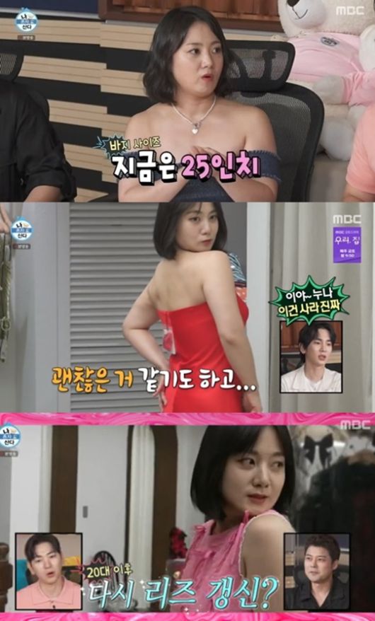 박나래는 “다이어터끼리는 ‘큰옷을 입으면 큰 사이즈로 돌아간다’라는 속설이 있다”면서 옷장 정리에 돌입했다. 살이 빠지면서 커버린 바지와 원피스 등을 과감히 나눔 박스에 옮기는 그의 모습에 무지개 회원들도 흐뭇해했다.