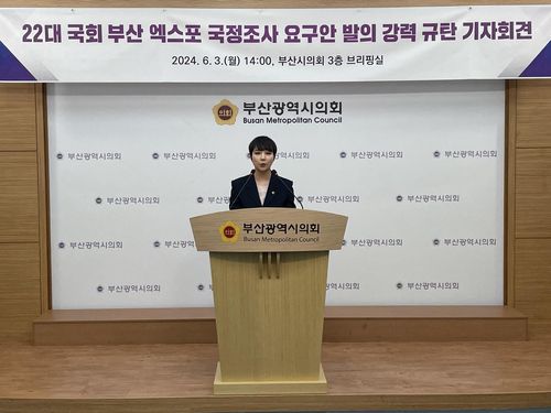 (부산=연합뉴스) 오수희 기자 = 더불어민주당 소속인 서지연 부산시의회 의원(비례)은 3일 "부산 엑스포 유치 실패 국정조사 추진과 정치 행위를 강력히 규탄한다"고 밝혔다.
