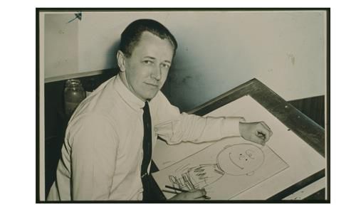 찰리 브라운 그림과 함께 있는 찰스 슐츠 |