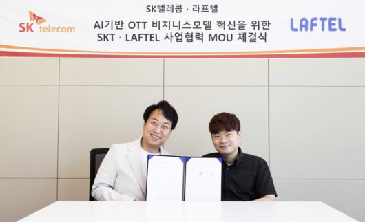 라프텔 본사에서 전날 오후 진행된 MOU 체결식에는 김혁 SKT 미디어제휴 담당(CMBO)과 박종원 라프텔 대표 등 양측 주요 관계자들이 참여해 AI 기술 도입과 마케팅 협력을 진행하기로 합의했다.